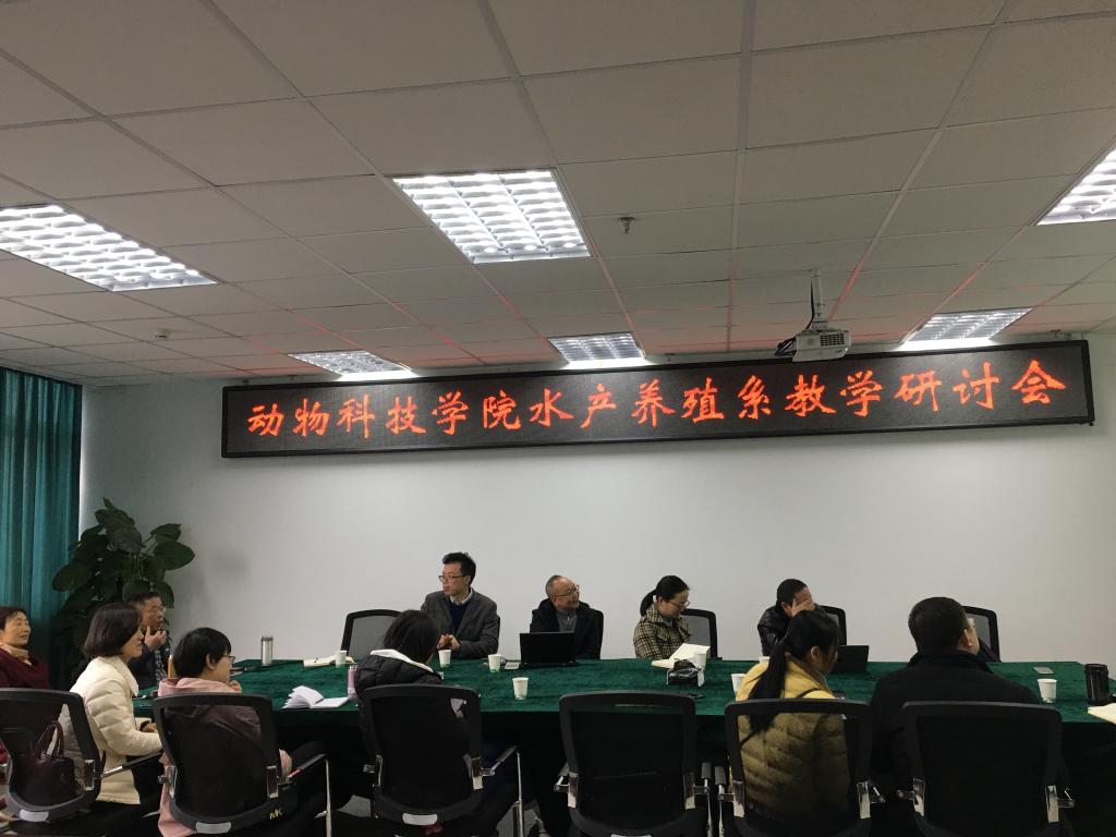 1月10日下午新葡的京官网水产养殖系在七教1012会议室召开了教学研讨会,学院党委书记付瑞琼、副院长王继文,教学管理人员和水产系全体教师参加会议,会议由水产系主任姜俊主持。