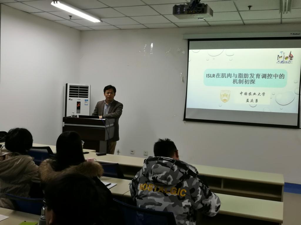 应新葡的京集团8814邀请,中国农业大学孟庆勇教授于2019年12月13日上午到学院进行了题为“Islr在肌肉与脂肪发育调控中的机制初探”的学术报告。报告由周光斌教授主持,二十余名动物科学相关专业的硕士研究生参加。