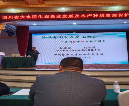 11月7日,受四川省水产局邀请,国家现代农业产业技术体系四川淡水鱼创新团队岗位专家杜宗君副教授,为四川省大水面生态渔业发展及水产种质资源保护区建设管理培训会作《绿水青山就是金山银山——千岛湖保水渔业模式解析》专题报告,全省省、市、县各级水产系统主要领导和主要企业负责人165人参加会议。