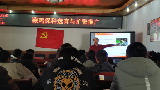 此次培训会以“藏鸡保种选育与扩繁推广”“四川藏区藏鸡提档升级安全增效技术培训”为主题,得荣县周边养殖户畜牧业相关从业人员60余人参会。在培训中,发放了相关技术手册,展望了今年非洲猪瘟行情下带来的家禽养殖的可观前景,讲解了藏鸡养殖技术,分析了得荣县的区域优势和2020年的家禽产业的详细行情。