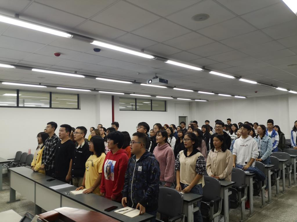 开班仪式上,党校工作办公室李汶详细介绍了本期的学员组成情况、各组辅导党员、负责人以及成绩考核方法,并着重强调了党校期间的纪律要求以及结业考试的重要性。各组辅导党员也纷纷上台发言,分享自己入党过程中的心得体会,并表达了对本期学员的殷切希望。会议进行了《国际歌》的教唱,同学们认真学习,激昂的声音响彻了整个教室。