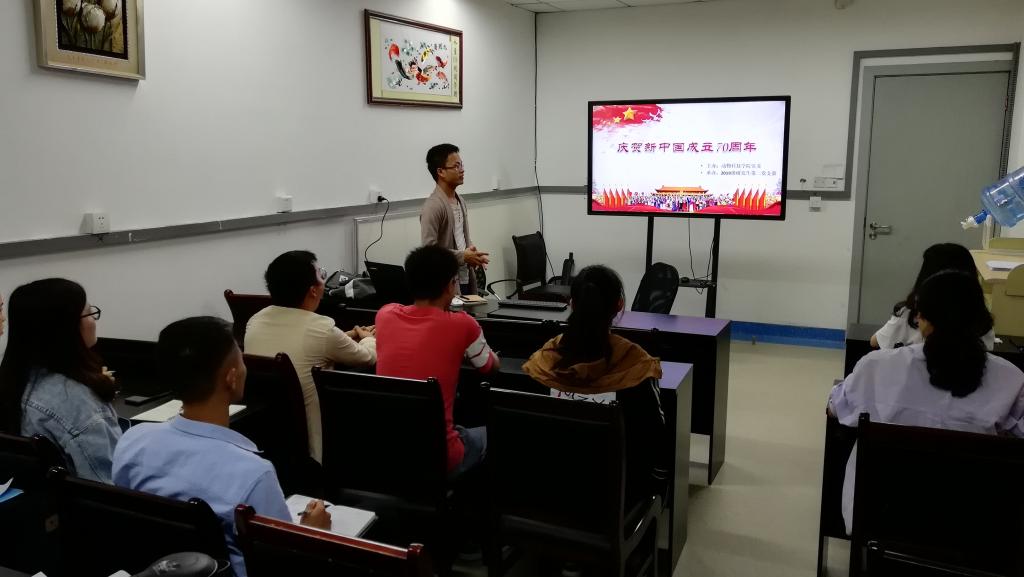 最后,钟亮同志发言:“今天的活动我们庆祝了祖国的70周岁生日,总体来说活动比较成功,同时也希望以后大家可以更积极地参与到活动的组织中来,并且在活动中可以畅所欲言,共同建设更好的支部。在这里,我也希望大家可以努力学习为了祖国更美好的明天奋斗。”
