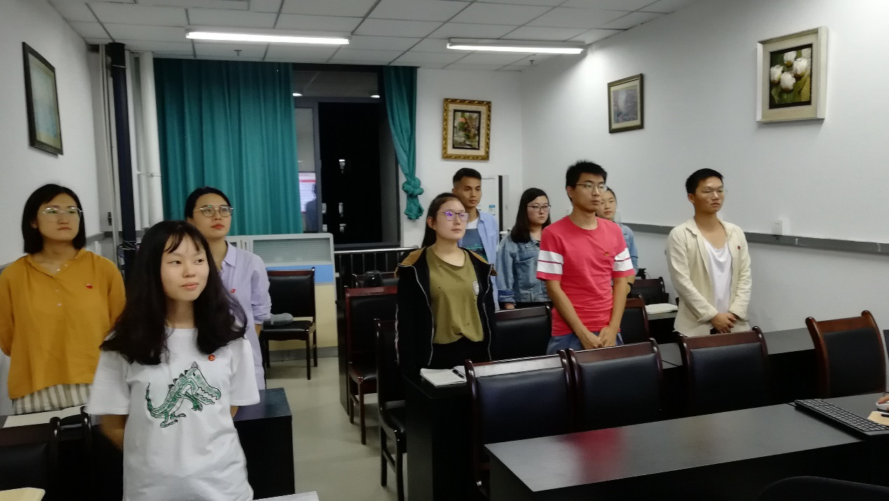 在中华人民共和国成立70周年之际,新葡的京集团88142019级研究生第二党支部在六教627召开党组织生活,为了献礼祖国70周年庆典以及培养学生党员的爱国情怀此次活动分为“合唱《我和我的祖国》”、“观看开国大典视频”、“交流祖国70周年来的变化”三个部分。支部副书记钟亮主持,支部成员应到15人,实到11人。
