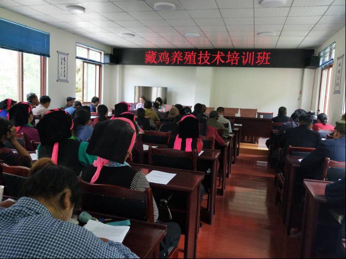 在培训中,胡耀东讲解了四川藏鸡的概况,兰丹、刘益平讲解了相关养殖技术知识,发放了团队编写的《藏鸡养殖技术百问百答》技术手册,还对养殖户所遇到的饲养技术问题一一答疑,培训会后教师一行还现场到达养殖户养殖地点进行现场养殖技术指导。