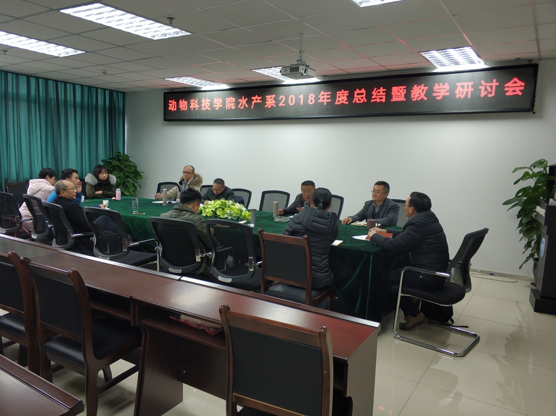 1月17日下午,水产系在7教10楼会议室召开了2018年度年终总结及教学研讨会。学院副院长王继文教授和张新全教授、学院领导曾以老师,院党办主任何勇、院党办副主任董尧及水产系在校全体教师参加了会议,会议由水产系系主任姜俊教授主持。