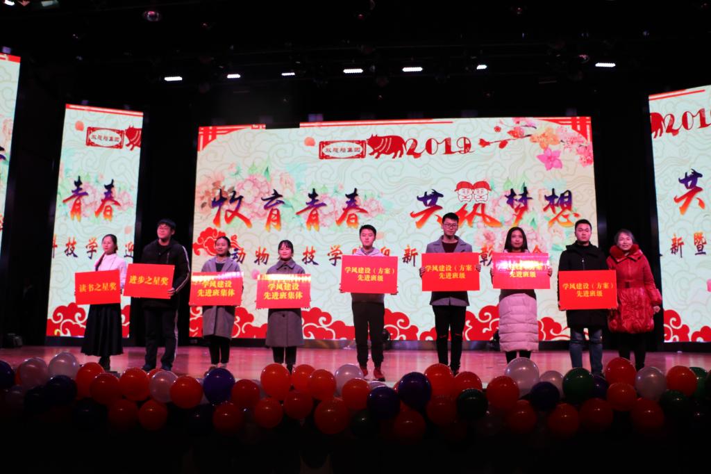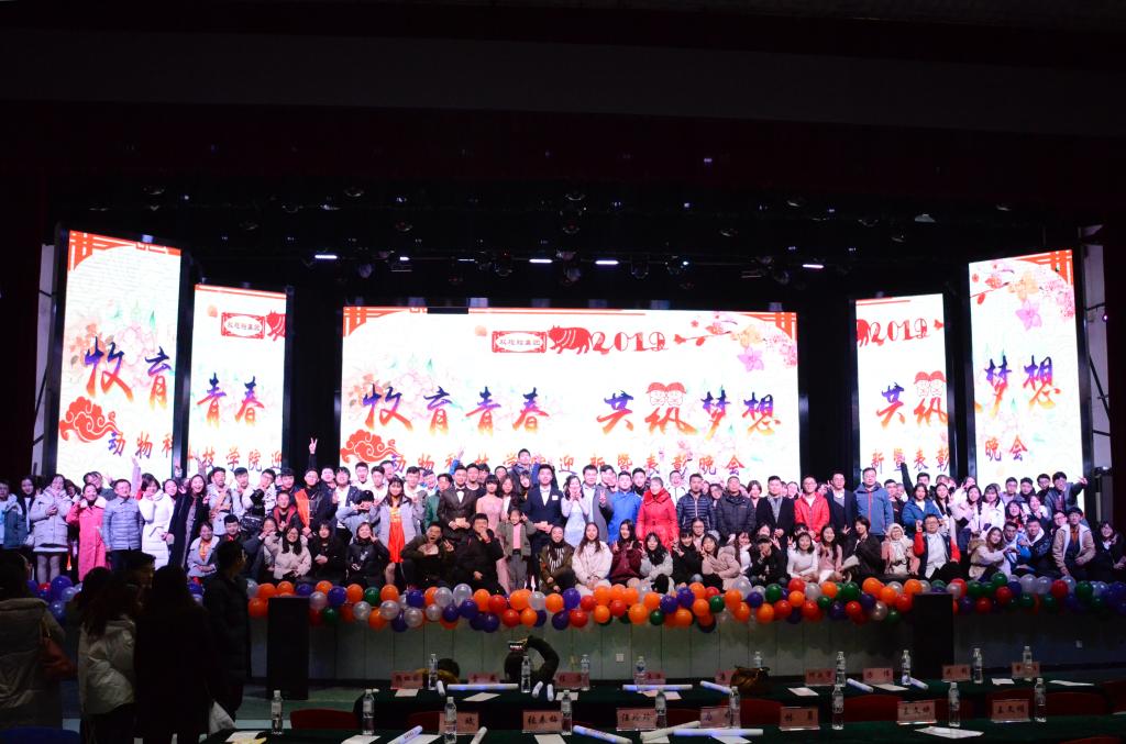 12月28日晚19:30,学院在麦立方举行“双胞胎之夜—牧育青春 共筑梦想” 2019年迎新暨表彰晚会。双胞胎集团人力行政中心总裁熊志华先生、集团招聘经理王文斌先生、川陕省区人力经理王文明先生、自贡分公司营销经理林勇先生,来恩畜牧有限公司总经理何成军先生,林丰园林建设工程有限公司副总经理程霞女士、招聘经理汪玲玲女士,飘绿园林绿化有限公司总经理助理戎利女士、飘绿群狼网络总经理马娟女士,青岛华牧华牧动物药业有限公司财务总监方伟先生,大帝汉克生物科技有限公司研发总监雷燕女士、企划主管周斌先生,学院党委书记潘宏研究员、院级领导曾以、动物遗传育种研究所副所长赖松家以及动物科学系、草业科学系、水产养殖系的系主任老师们与1000多名学生共赏各类精彩纷呈的节目表演。