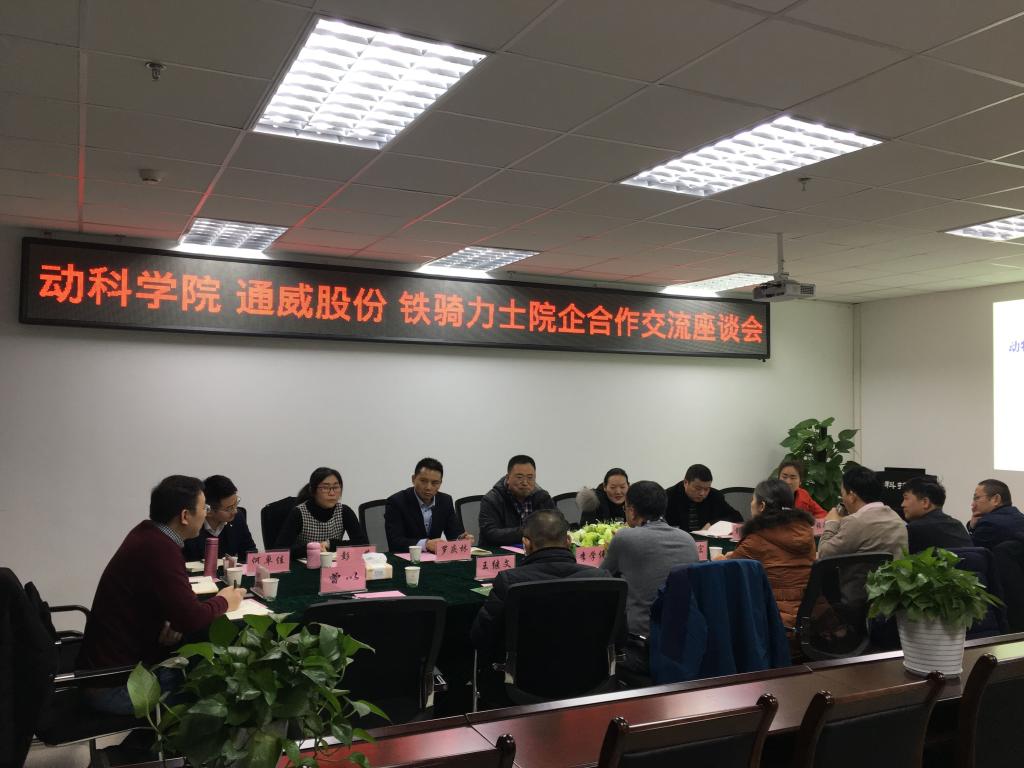 12月12日下午4点,学院在7-1012会议室与通威股份、铁骑力士集团举行院企合作交流座谈会。铁骑力士集团人力资源总监张铁军、人力资源部部长李永祥、饲料事业部人力资源经理彭栋秋、招聘经理张英萍,通威股份招聘经理罗庆林、招聘专员何卓佳、蓉崃通威人事经理彭英以及学院全体领导班子和系室主任参加了座谈会。