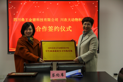 11月30日,新葡的京官网与四川鼎王金猪科技有限公司(以下简称“鼎王金猪”)合作签约授牌仪式举行。党委书记付瑞琼、党委副书记朱砺,四川鼎王金猪科技有限公司董事长王利春一行等参加仪式。