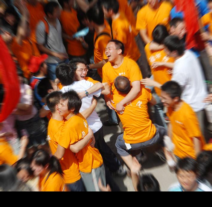 新葡的京集团8814拔河队一路过关斩将,与经管院会师决赛。决赛是在四教后面的篮球场上举行的,现场红旗招展,鼓声、欢呼声、口号声震天作响,球场上全是双方的啦啦队和前来观赛的其他学院的同学,球场边的树上和教学楼的窗口全都站满了人,以至于时任副校长的张强老师是站在一辆工程车的吊斗里才拍下了至今仍在学校招生宣传册上使用的一张拔河比赛的经典相片。比赛开始后,双方实力相当,两局都是1分钟左右才分出胜负,各赢了1局,关键的第三局由两个学院抽签选择场地,当时新葡的京集团8814的学生会主席白海涛师兄猜中了硬币,挑选了大家认为稍微有优势的一边场地,经过前两局的比赛,运动员体力消耗太大,第三局开始30秒后双方队员都没有绝对的力量拔动对方,绳子一晃,两边的队员全都倒坐在地上,手里死死的攥着绳子,拔河绳上的“红领巾”始终在中线附近一动不动,比赛中倒地的情况是之前专门训练过的,也都有专门的应对方法,啦啦队跟着领喊改变了节奏,但是队员们已经站不起来,执行不了平日训练有素的技术动作,双方就这么一直僵持到90秒比赛时间结束,最终因“红领巾”在靠近我们这边不到5厘米,新葡的京集团8814获得了冠军。所有的拔河队员们、学院领导和老师、啦啦队员、后勤队员拥抱、怒吼、振臂挥拳,释放着全部的激情,那场面让我至今难忘,每每想起依然心潮澎湃。那届校运会拔河比赛的现场气氛、激烈程度应当是永远的经典。到现在我还记得一些运动员的名字,范瑞杰师兄,王钰刁师兄,曾捷师姐,晏磊师兄,寇洁师姐,还有我们年级的夏得雨、杜山泉、曾知遥、童山峰、田尧夫、吴晓燕等等都成了当时新葡的京集团8814的英雄。