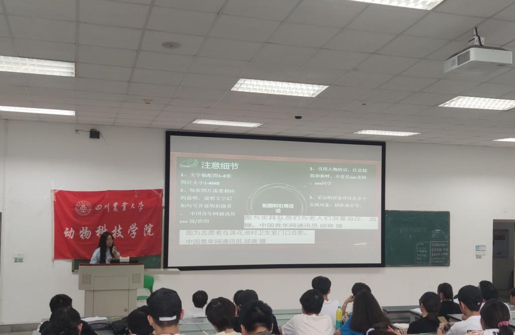宣讲会分为三个部分开展。首先由实践部杨益为大家讲解了暑假社会实践的相关事宜。接着由新青年通讯社的同学对大家进行了组图稿和视频新闻的培训,在对比中讲解了新闻稿的要点和注意事项。最后李娜老师对此次活动进行了补充说明,她鼓励同学们聚焦全面推进乡村振兴战略的重点任务,组建具有专业特色的实践团队,在专业老师的指导下,开展有深度、有意义的社会实践。
