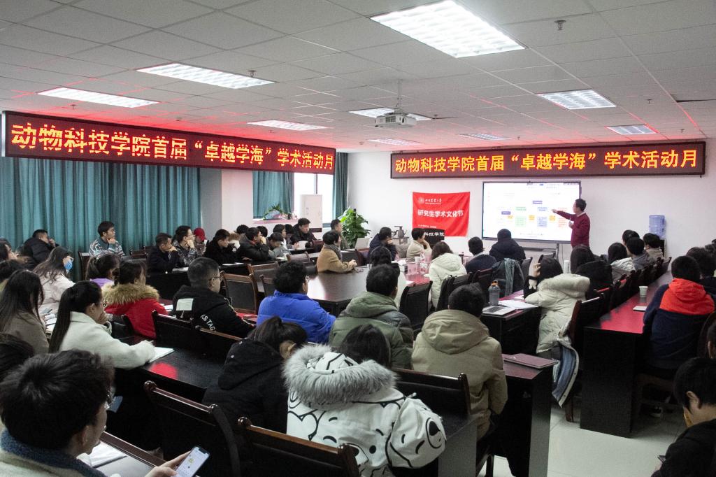 此次论坛分为两个部分,上半场优秀青年教师金龙和罗伟分别作了题为“猪基因转录‘地图集’构建及进化动态研究”和“稻渔共生系统中鱼和稻镉的富集特征及机制研究”的学术报告。下半场为优秀研究生的科研写作经验分享。