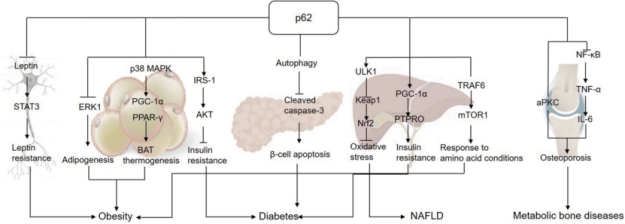 《p62 works as a hub modulation in the ageing process Effects of antiaging interventions on intestinal microbiota》(p62是衰老调控的关键枢纽)一文为p62在衰老中的研究提供新的视角与方向。p62是细胞内自噬体形成的关键蛋白,被广泛用作衡量自噬通量活性的因子。P62参与形成的自噬体与溶酶体协同降解细胞内有害或不必要的蛋白成分,维持细胞内蛋白质的稳态。但目前关于p62在衰老过程的作用尚未被清晰的定义,通过大量文献综述并结合实验室的研究资料,总结认为:作为-泛素蛋白酶体系统(Ubiquitin proteasome system-UPS)和自噬之间的桥梁,p62的功能对于降解错误折叠的蛋白质和维持细胞中的蛋白质稳态至关重要。另一方面,作为多功能信号传导枢纽,p62通过Nrf2、NF-κB等信号通路参与氧化应激、炎症、代谢重编程等过程。此外,p62参与调节蛋白质稳态、代谢和营养感知、免疫、线粒体功能、氧化应激和细胞衰老,等与衰老密切相关的分子途径和细胞过程调控复杂的衰老过程。同时在多种小分子化合物或药物的抗衰老研究结果中,也明确观察到p62分子水平的改变。这表明p62是抗衰老药物发挥功能的途径之一,也预示着使用作用于p62的药物来实现抗衰老是可行的。