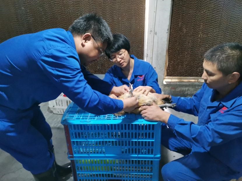 2022年5月12日,为全面推进四川省第三次全国畜禽遗传资源普查的畜禽品种性能测定工作,新葡的京集团8814副院长赵小玲教授赴眉山温氏畜牧有限公司开展“温氏青脚麻鸡2号”配套系性能测定培训,眉山市农业农村局畜牧站站长欧志国、副站长王容、眉山市东坡区畜牧站于鹤及眉山温氏畜牧有限公司糜建设、夏波、杜娜、黄金梅参加了培训会。