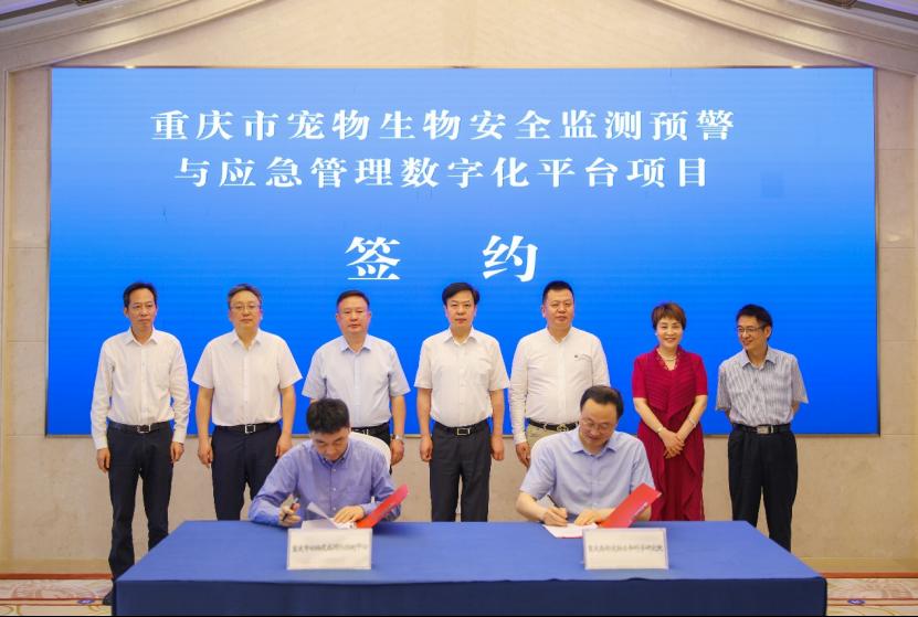 6月17日,由新葡的京集团8814、狗联网(重庆)科技有限公司及易宠科技联合发起的重庆西部宠物生命科学研究院、重庆市宠物生物安全监测预警与应急管理数字平台签约暨授牌仪式在重庆永川区举行。永川区区长常晓勇、重庆市民政局副局长邓琳、重庆市科协副主席程伟、重庆市动物疫病预防控制中心主任曾政等出席。