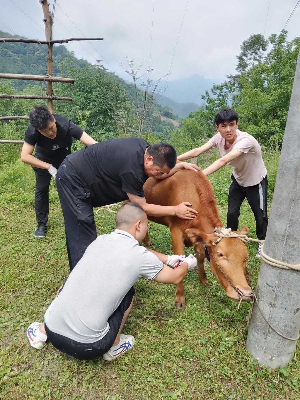 专家们首先在平武县农业农村局与局分管领导和技术骨干就平武牛资源普查、开发与利用等问题进行了座谈交流。随后在平武县农业农村局副局长刘斌等陪同下分别前往平武县平武牛保护区旧堡乡和大桥镇,对50余头平武牛按照国家要求逐一采取了血样,并进行了体尺、体重等多项测定。在测定过程中,赖松家教授还针对平武牛养殖现状及需要注意的问题与养殖户们进行了交流,并进行了指导。