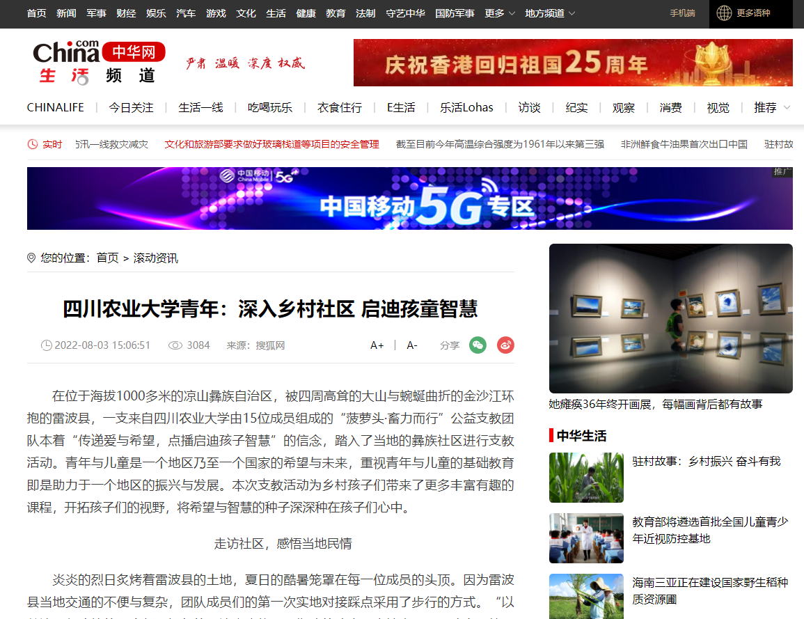 在位于海拔1000多米的凉山彝族自治区,被四周高耸的大山与蜿蜒曲折的金沙江环抱的雷波县,一支来自新葡的京集团8814由15位成员组成的“菠萝头·畜力而行”公益支教团队本着“传递爱与希望,点播启迪孩子智慧”的信念,踏入了当地的彝族社区进行支教活动。青年与儿童是一个地区乃至一个国家的希望与未来,重视青年与儿童的基础教育即是助力于一个地区的振兴与发展。本次支教活动为乡村孩子们带来了更多丰富有趣的课程,开拓孩子们的视野,将希望与智慧的种子深深种在孩子们心中。