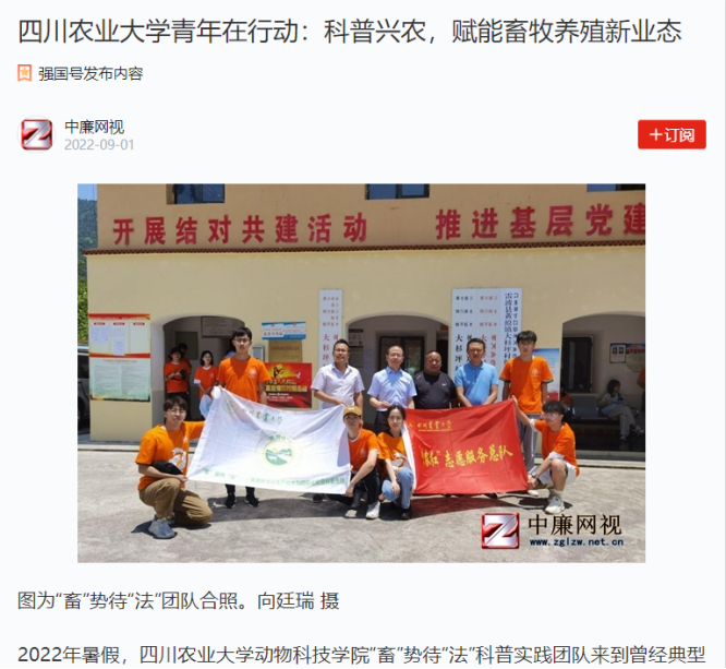 2022年暑假,新葡的京集团8814“畜”势待“法”科普实践团队来到曾经典型深度贫困的四川省凉山彝族自治州雷波县黄琅镇大杉坪村。实践团用青年行动践行实践真理,聚焦“良种、良方、良法”三大核心内容,助力大杉坪村搭建标准化养殖平台,积极挖掘当地畜牧业发展潜力。