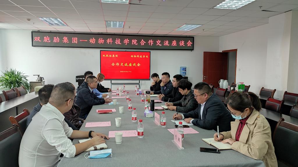 10月17日上午,双胞胎(集团)股份有限公司西南战区总裁何敏、副总裁董赛、人力部长高宗亮等一行来到学院座谈交流,学院院长朱砺、党委书记付瑞琼、副院长杨淞及学院相关老师参加座谈交流。