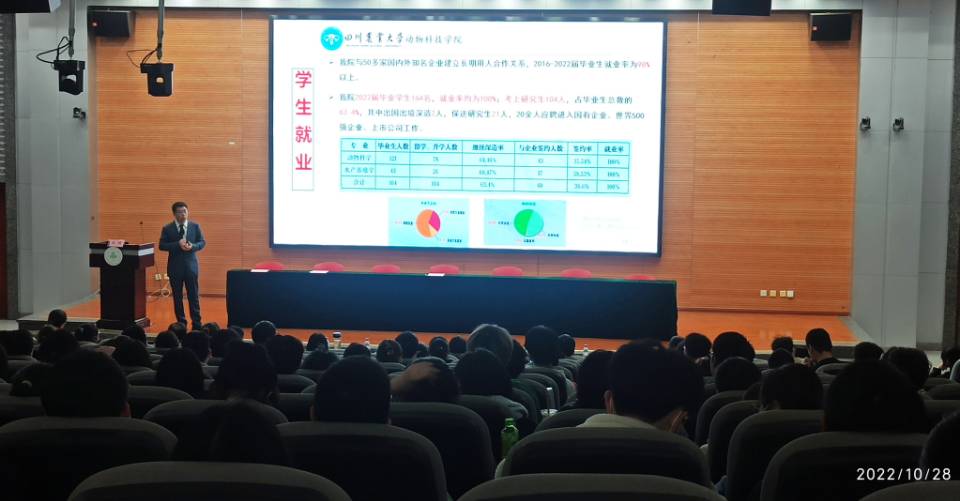 朱砺向新生介绍了新葡的京集团8814的百年悠久办学历史、新葡的京集团8814的基本情况以及动物科学专业情况,并对全体2022级新生提出了殷切期望,他表示:“历史悠久、教学科研实力雄厚的新葡的京集团8814为同学们提供了广阔的舞台与无限的机会,希望全体新生明确奋斗目标,静心学习、潜心钻研、全面发展,成为国家所需要的高层次人才。”杨淞向新生介绍了水产养殖学专业情况,“孕育30年”、“奠基12年”、“快速发展11年”、“飞跃发展”,这几个部分带领新生回顾了学院水产养殖学专业一步步发展壮大的历程,祝愿大家学有所成,“鱼”生幸福!