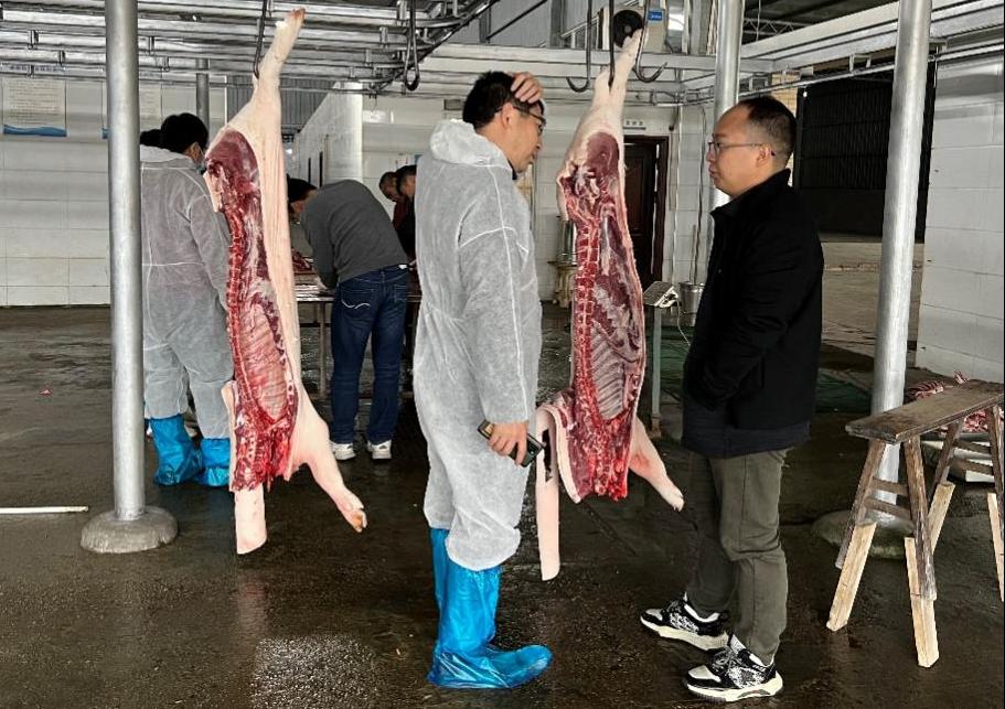 朱砺教授团队与四川德康农牧食品集团股份有限公司负责人首先就天府白猪培育过程中存在的问题以及未来规划进行了座谈交流,随后在内江市资中县对18头天府白猪基础群体的胴体性能和肉质性状进行了系统评价,测定了屠宰率、瘦肉率、肉色、肌内脂肪含量等60余项经济性状指标。