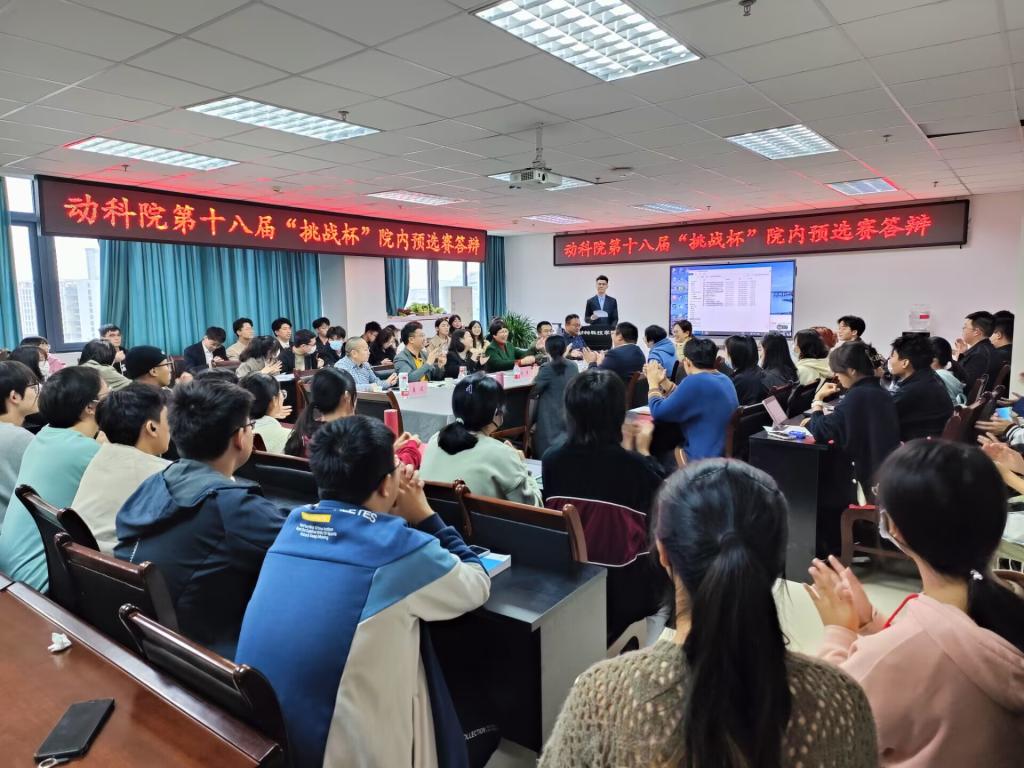 11月8日下午,第十八届“挑战杯”全国大学生课外学术科技作品竞赛学院预选赛答辩在七教1011室顺利举行。学院党委书记付瑞琼、学院副院长杨淞、动物科学系主任张明、水产养殖系主任姜俊、动物遗传育种研究所副所长刘贺贺、行政办公室老师和党委办公室全体老师出席此次活动。