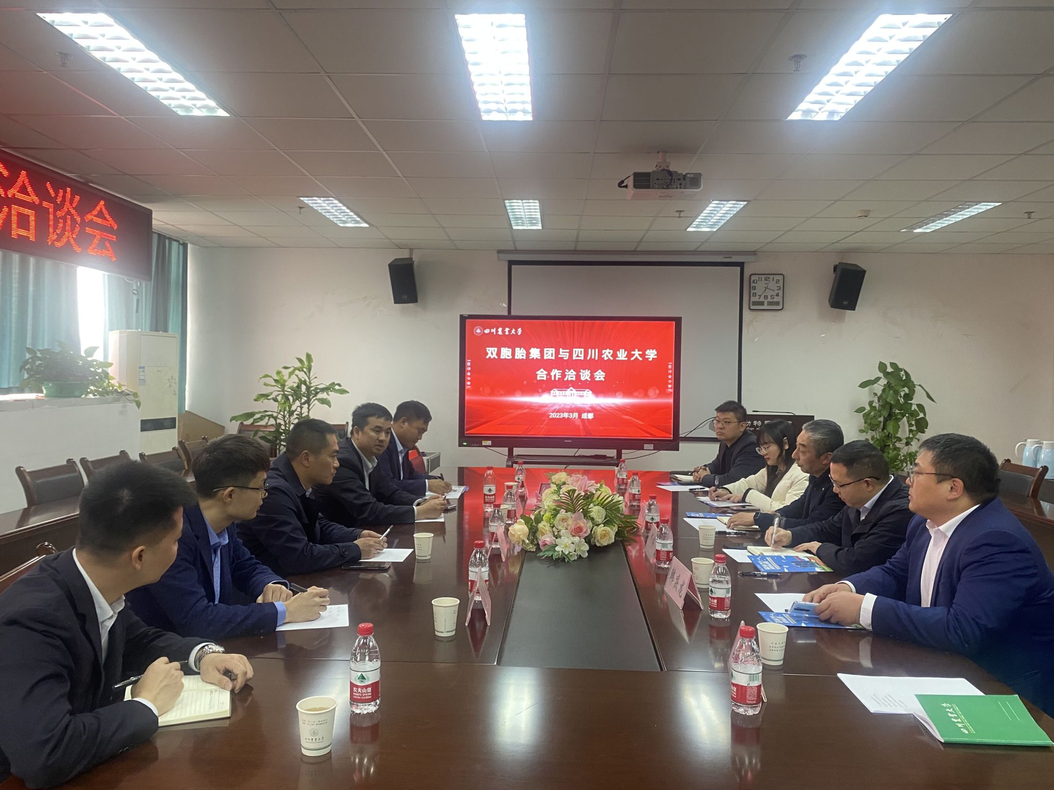3月14日下午,双胞胎集团人力行政中心总裁熊志华、西南战区总裁何敏等一行来到学校座谈交流,学院党委书记何桦、动物医学院党委书记贾仁勇及动科动医学院、动物营养研究所相关老师参加座谈交流。