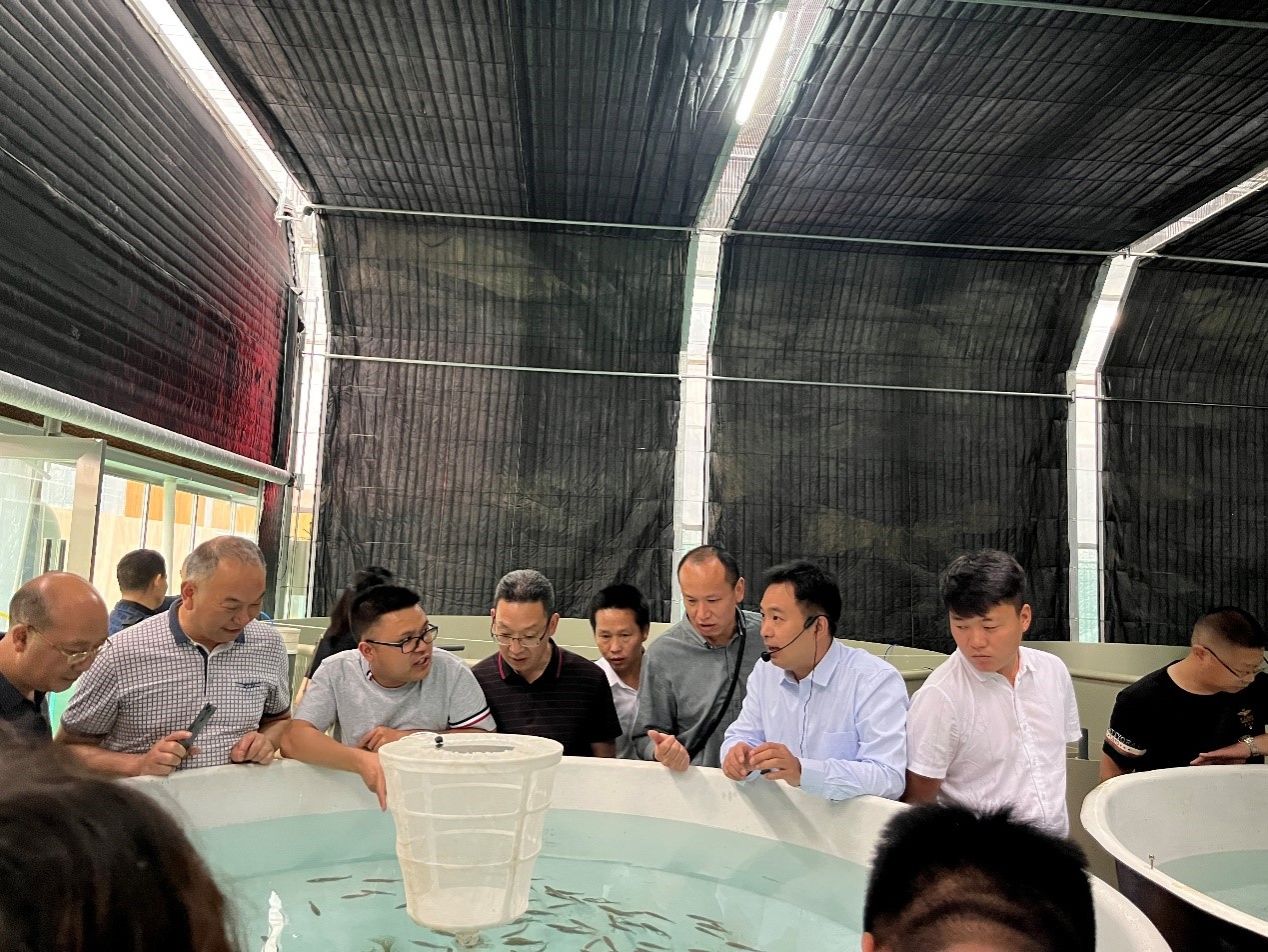 水产健康养殖团队负责人杜宗君教授、姜俊教授、罗伟副教授和久旺农牧科技有限公司总经理钟其渝等向各位领导和相关同志介绍了工厂化循环水养殖和池塘“零排放”圈养的研究进展和实际应用情况。罗本彬充分肯定了水产健康养殖团队在水产绿色健康养殖方面的研究成果及转化应用,为四川省水产绿色健康养殖技术推广起到了良好的示范作用。他还指示加快研究工厂化循环水养殖和池塘“零排放”圈养模式的最佳生产方式,优化技术体系,希望尽早在全省推广应用。