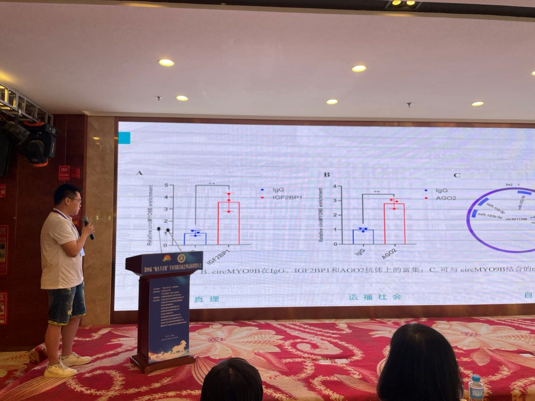 李利教授就团队发展作年度汇报,学院青年教师曹家雪作题为“RNA m6A修饰调控山羊肌细胞发育的分子机制”学术报告。研究生徐亮作题为“IGF2BP1识别m6A-circMYO9B促进山羊肌细胞增殖的分子机制”报告,并荣获第四届“领头羊计划”学术交流实践会暨高校联盟年会三等奖、“中盛环有”优秀学术报告铜奖。两项学术报告研究有助于解析RNA m6A修饰对山羊肌细胞发育的调控机制,对于提升我国山羊产肉性能意义重大。
