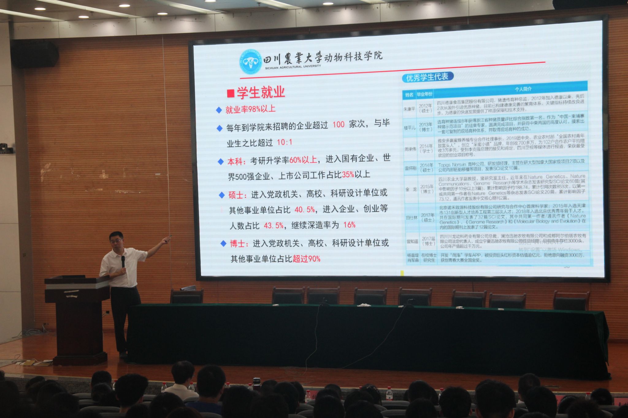 在新生入学教育大会上,学院特邀四川省劳动模范、首届“全国乡村振兴青年先锋”、第31届世界大学生运动会第30棒火炬手杨海和成都市五四青年奖章、国家级创青春获得者、全国创业英雄百强、第31届世界大学生运动会第121棒火炬手、2021级动物遗传育种与繁殖专业博士生杨喜堤作专题讲座,学院党委书记何桦、全体辅导员及2023级新生参加报告会。