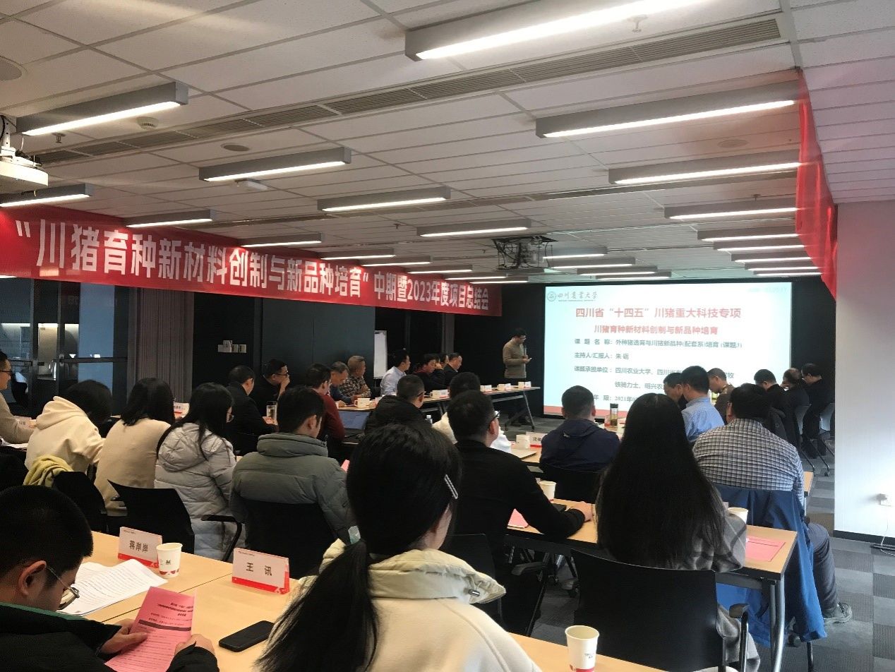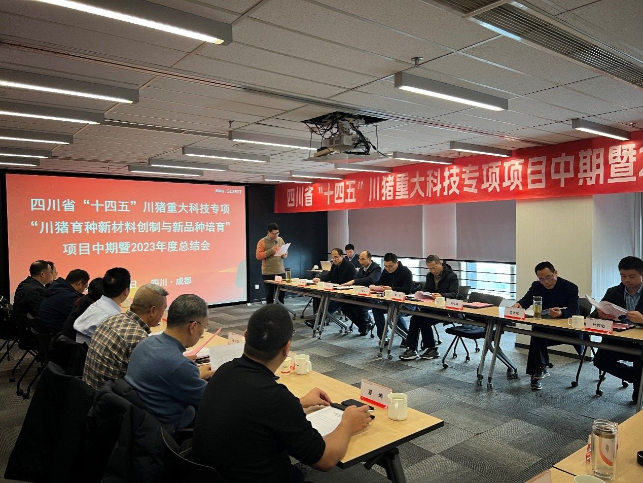 1月12日,我校新葡的京集团8814曾长军教授担任首席专家的四川省“十四五”川猪重大科技专项“川猪育种新材料创制与新品种培育”项目中期暨2023年度总结会在铁骑力士食品有限责任公司成都办事处召开。四川省科学技术厅重大专项处处长蔡红,四川省农业农村厅种业发展处副处长余协中,四川省农村科技发展中心周华强副主任等3位专家组成项目咨询专家组。项目责任联系专家四川省畜牧科学研究院养猪所所长吕学斌莅临会议跟踪指导。四川省畜牧总站副站长李强,四川省畜牧科学研究院党委书记何志平,我校科技处副处长杜俊波作为项目特邀咨询专家参会。来自新葡的京集团8814、四川省畜牧总站、四川省畜牧科学研究院、铁骑力士食品有限责任公司、绵阳明兴农业科技开发有限公司、邛崃市嘉林生态农场、巴中市巴山牧业股份有限公司、四川德康农牧食品集团股份有限公司等8家项目合作单位的20余位相关研究人员参加了此次会议。