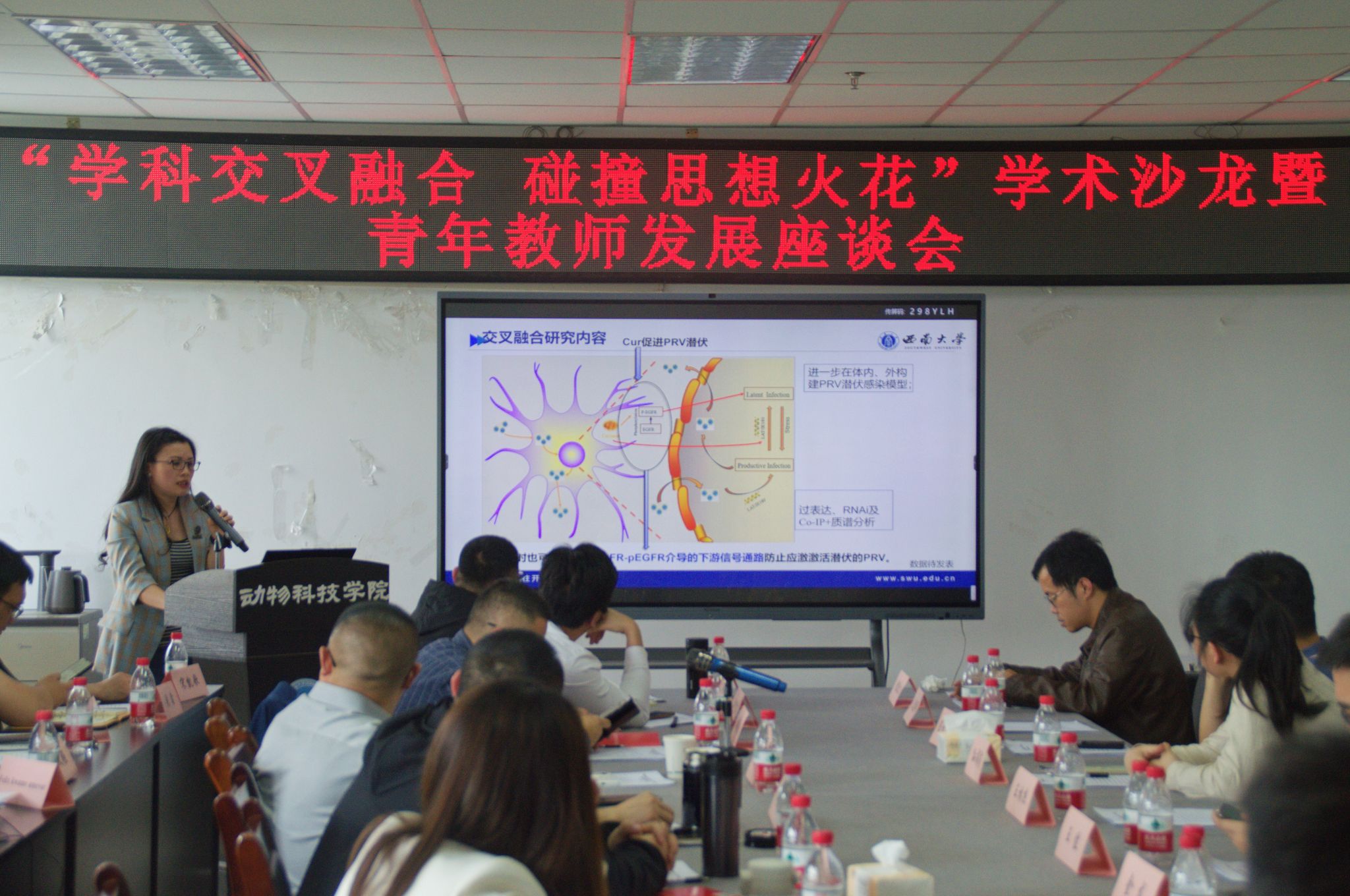 学术沙龙环节,新葡的京集团8814青年教师金龙、王林杰、陈仕毅,理学院青年教师王位、孙萌萌、沈照力和王显祥分别作了题为“猪骨骼肌和脂肪基因转录调控的全局空间图谱”“动物棕色脂肪产热基因顺式调控元件的功能鉴定”“奶牛基因组育种研究中的跨学科技术应用”“生物屏障相互作用的微纳米马达研究及其动物应用”“纳米材料与动物医学耦合探索疾病治疗新途径”“利用数学方法探索猪肌纤维分布模式”“化学与动物营养交叉融合——以微量营养元素为例”的学术报告,来自西南大学的特邀专家甘玲教授作了题为“猪的应激损伤与营养免疫调节”的专题报告。与会青年教师热情互动,就各自科研和成长问题进行了充分交流,活动现场气氛热烈。
