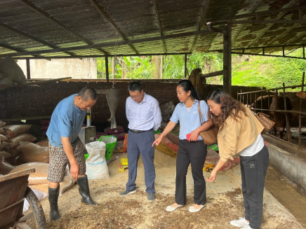 图2 团队一行在指导养殖户饲料配制