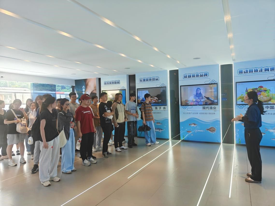 会前,学院水产养殖学专业2021级全体本科生在杨淞教授和陈德芳副教授的带领下,参观了天全县水产现代农业园区。通过近距离观察和园区工作人员的讲解,对集约化流水养殖模式、冷水鱼全产业链发展模式、鲟鱼养殖技术规范有了更深入的了解。
