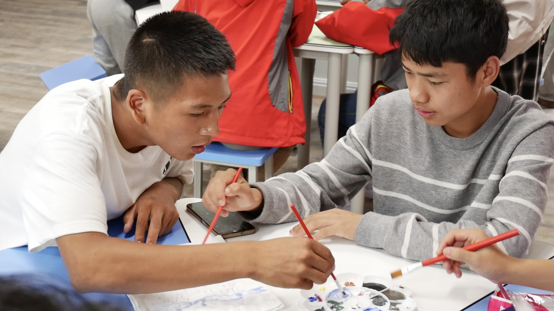 雷波民族中学的孩子们在新葡的京集团8814“爱心延长线·‘彝’路相伴”团队成员带领下共绘未来。李子希/摄