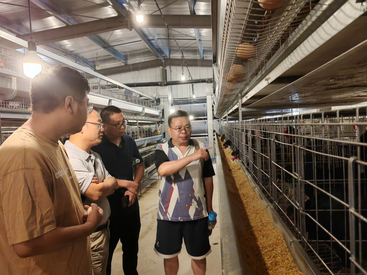 在张杨军的带领下,刘益平一行详细参观了草科鸡科研用房、孵化室、育雏育成一体舍和种鸡舍,全面了解了公司的运营、管理情况。随后,刘益平指出了新建养殖场需要注意的问题和急需改造提升的地方,并提出了创新开发利用草科鸡,引入第三方经营管理以促进产业发展等建议。