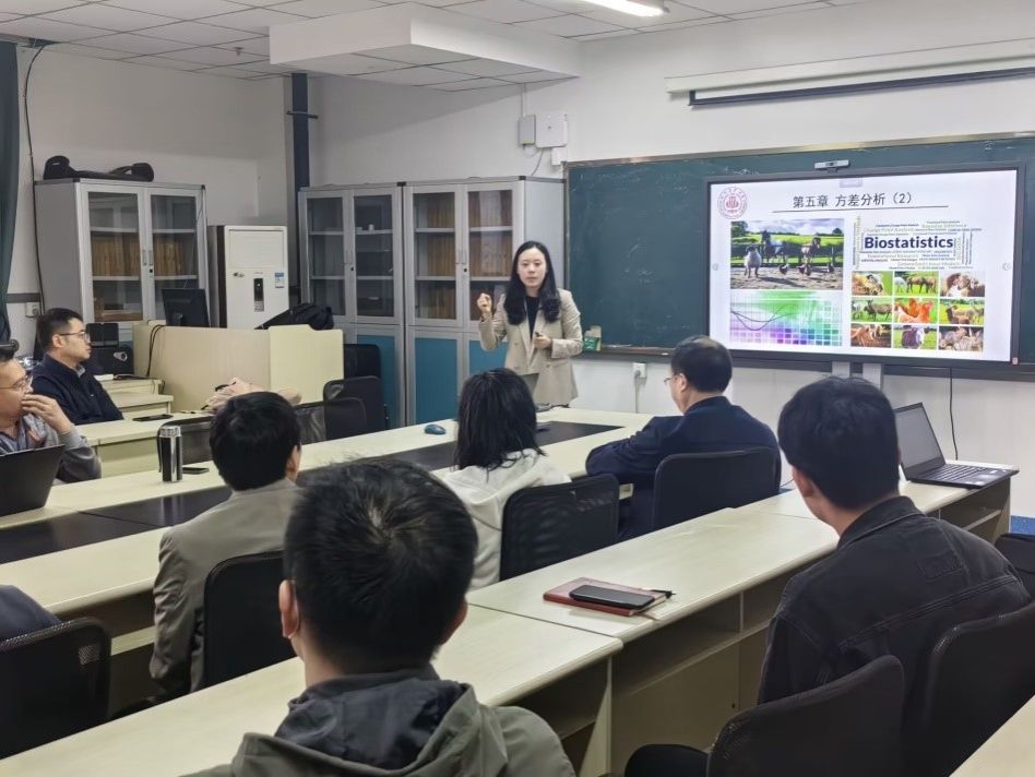 《生物统计与试验设计》、《畜牧经济与牧场管理》以及《动物分子生物学》课程负责人分别进行课程试讲,展示了课程教学大纲、课程育人教案、PPT以及其它教学环节等课程建设情况。全体教师围绕如何有效管控课堂、提高教学水平、授课以及课程档案中存在的问题进行研讨。