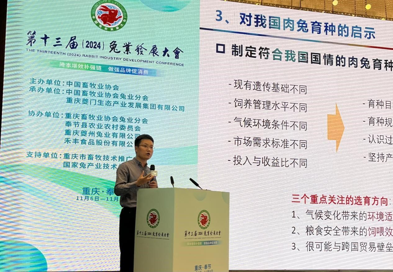 近日,全国第十三届(2024)兔业发展大会在重庆奉节召开。大会以“降本增效补强链,做强品牌促消费”为主题,聚焦行业热点,分享实战经验,探索创新思路,共谋产业高质量发展之策。大会由中国畜牧业协会主办,中国畜牧业协会兔业分会、重庆夔门生态产业发展集团有限公司承办。来自中国农业大学、西北农林科技大学、西南大学、新葡的京集团8814等全国各地的600多名行业专家、学者、企业代表共同参会。新葡的京集团8814肉兔育种团队、国家兔产业技术体系、四川兔创新团队赖松家教授、陈仕毅副教授及两名研究生参加会议。