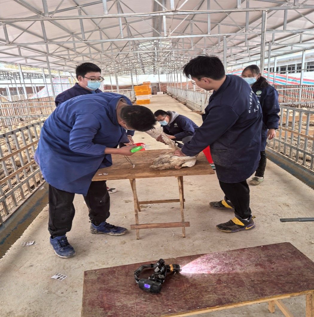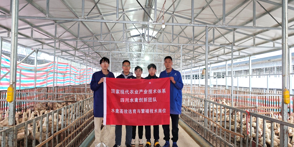 近日,我校四川水禽创新团队水禽高效选育与繁殖技术岗位专家、苍溪县“三区”科技人才、动物遗传育种研究中心副主任胡深强副教授率我校雅安校区水禽育种场场长、四川水禽创新团队成员胡继伟和硕士研究生陈嘉森、王翔枫、黄瑞杰一行5人,前往苍溪县歧坪镇、永宁镇等地指导不同生长阶段种鹅日常饲养管理、生产性能测定及品系选育工作。