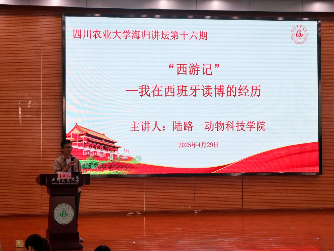 4月29日下午,由学校党委统战部及留联会主办、学院承办的“海归同心·筑梦川农”海归讲坛第十六期在成都校区二教报告厅开讲。本期讲坛特邀四川省“天府峨眉计划”青年人才、四川省海外高层次留学人才陆路副教授主讲,讲坛由学院党委副书记、纪委书记杨雪主持,300余名师生共同聆听本次讲座。