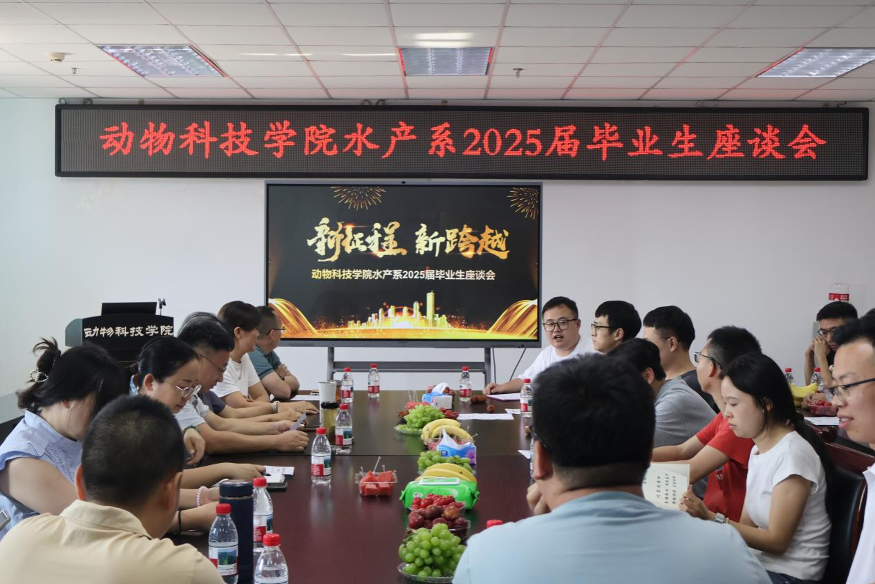 6月11日,学院水产系2025届毕业生座谈会在温馨热烈的氛围中举行。学院副院长杨淞、水产系导师代表与全体毕业研究生齐聚一堂,共同回顾科研学习历程,分享感悟、畅谈未来。会议由2025届毕业生徐铭主持。