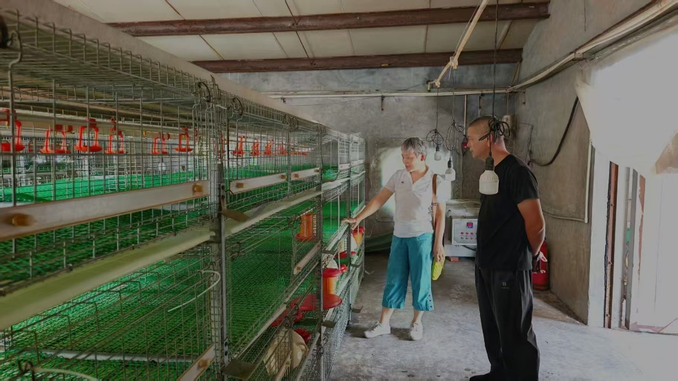 图1杜晓惠教授在毛村育雏场指导育雏笼布置
