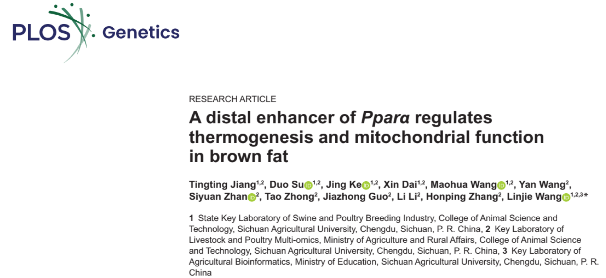 寒冷条件下棕色脂肪(BAT)通过非颤栗性产热调节体温,在寒冷适应和能量代谢平衡中发挥关键作用。同时棕色脂肪在人、牛羊等大型哺乳动物出生后被迅速招募富集,对于新生哺乳动物早期生产发育和体温维持发挥着重要的作用。但是目前寒冷条件下调控棕色脂肪产热的途径及其转录调控机制还不明确。近日,学院王林杰教授课题组在自然指数期刊《PLOS Genetics》上发表题为“A distal enhancer ofPparαregulates thermogenesis and mitochondrial function in brown fat”(PPARα增强子调控棕色脂肪产热和线粒体的功能)的研究论文。