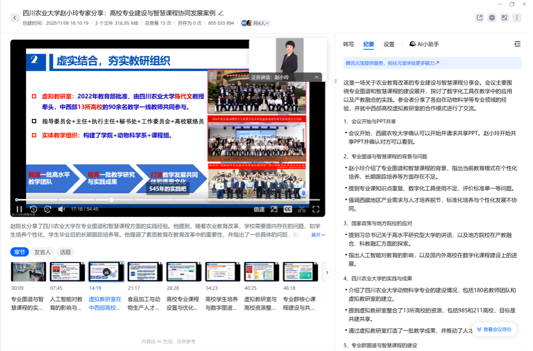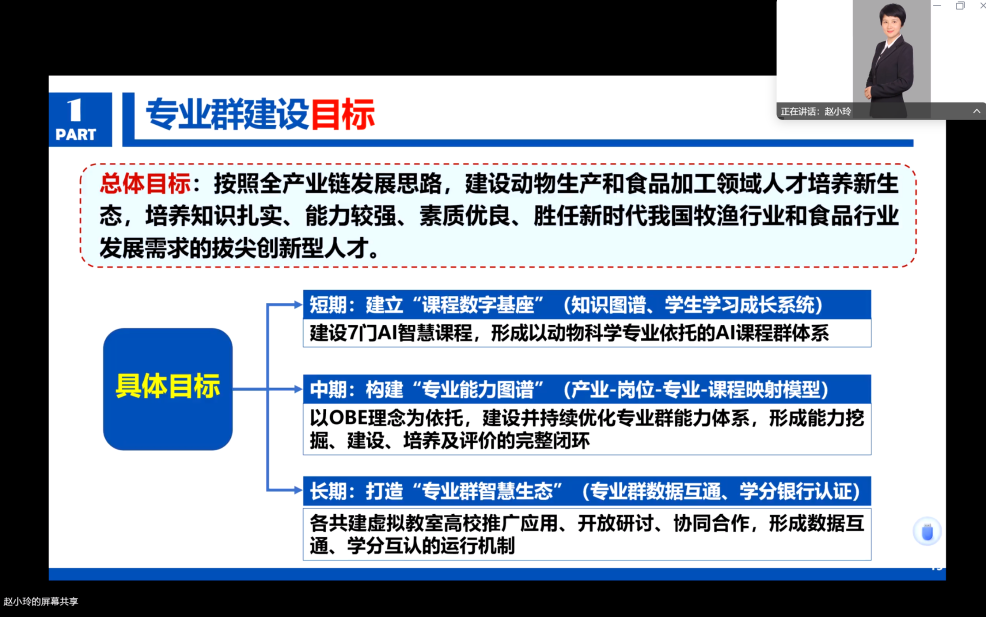 最后,她介绍了新葡的京集团8814在虚拟教研室建设方面的成果,并强调了专业群图谱、智慧课程以及虚拟教研室在教学改革中的重要作用。参会者分享了各自在动物科学等专业领域的经验,并就中西部高校虚拟教研室的合作模式进行了交流。西藏农牧大学的老师表达了加入教育部“动物科学专业教学改革研究”虚拟教研室的意愿,赵教授表示诚挚开放的态度欢迎兄弟院校们的加入并对于专业群未来规划做分享。