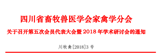 根据《四川省畜牧兽医学会章程》有关规定,经上级主管部门批准,分会第四届常务理事会研究决定,四川省畜牧兽医学会家禽学分会第五次会员代表大会暨2018年学术年会拟于2018年6月22-23日在新葡的京集团8814成都校区(成都市温江区惠民路211号)召开。现将有关事宜通知如下: