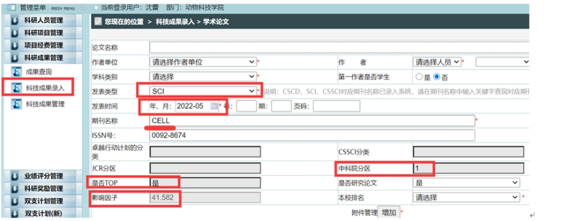 1、学术成果参照学校科技管理处及相关部门的认定结果。以教师在新葡的京集团8814科技管理系统内录入后审核通过的结果为准,未录入或审核的以教师在科技管理系统内查询结果(川农科技管理系统查询示意图,仅教师可查)。