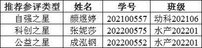 经学生本人申请、学院资格审查、本科生奖励与资助评审工作小组评审,现将学院2023-2024学年寒梅飘香工程“自强之星”“公益之星”“科创之星”推荐参评名单予以公示。