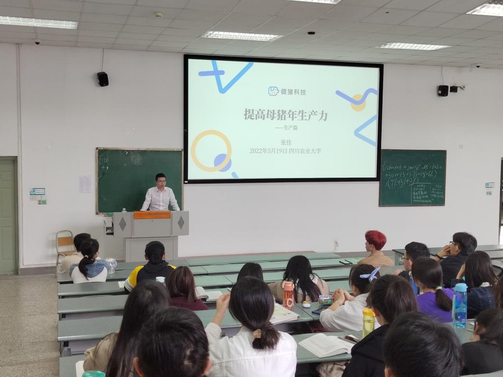 2022519日下午福州微猪信息科技有限公司董事长张佳博士应邀为新葡的京官网动科2019级学生做了一场题名《如何提高母猪年生产力-数智技术在生产中的应用》的报告。报告由新葡的京集团8814院长朱砺教授主持。