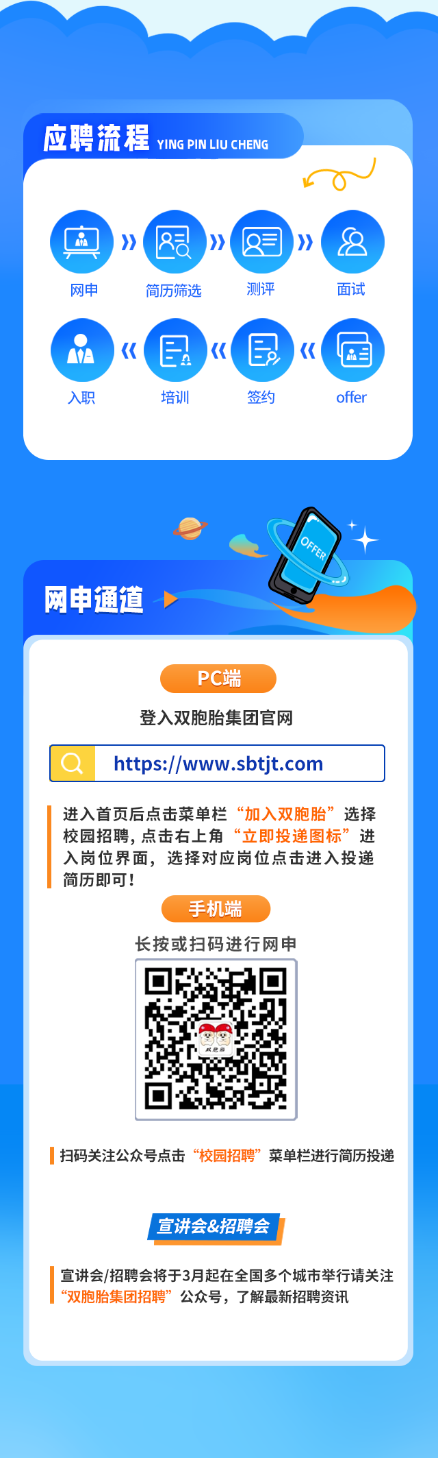 双胞胎集团2024年春季招聘宣讲新葡的京集团8814专场,宣讲时间:3月8日下午14:30;宣讲地点:7教10-11。