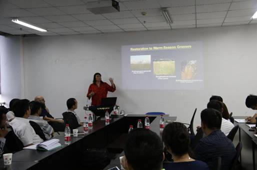 11日上午,Wilson教授与Cobb博士为全校师生做了题为“Mycorrhizas in grasslands and agroecosystems”的主题报告,向大家详细介绍了土壤地下微生物、特别是丛枝菌根真菌(Arbuscular Mycorrhizal Fungi)在退化草地恢复及可持续牧草及农业生产发展中的重要地位。这种存在于宿主植物及土壤微生物间特殊的互利共生关系,不仅可以促进植物吸收营养、增加土壤的养分水平,而且可为今后的牧草或作物育种提供新的研究方向。