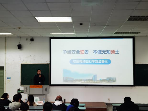 学院特邀请校保卫处陈学文老师,针对校园电瓶车数量激增带来的安全隐患,结合近期学校典型案例,从交通安全、规范停放、充电安全三方面提出具体要求:一是骑行电瓶车必须佩戴头盔,严禁超速、逆行;二是规范停放电瓶车,严守“文明骑行八不要”;三是严禁电瓶车进楼,以避免潜在的火灾风险和对公共空间的占用。同时对校园电信诈骗案例进行了深刻解读,通报了近年来校园电信诈骗案件数据,高发类型包括刷单、冒充公检法、校园贷及裸聊敲诈,提醒师生警惕“帮信罪”风险,牢记“三不”原则,筑牢防诈“防火墙”。